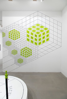 Jesse Bransford, Hills Become the Sun (Three Into Four), 2015, Tempera paint, graphite, four bowls containing: air from the CAMH, soil from GAR, water from Galveston Bay and sand from the Gulf of Mexico. Site specific installation at CAM Houston (Destroyed).